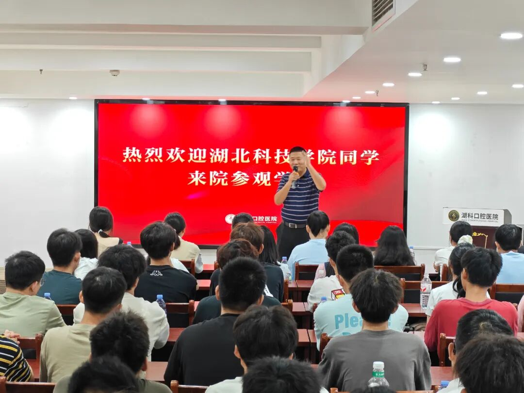 在湖科口腔医院,在院方领导的热情接待中,同学们全面了解了医院的发展历程、科室设置与校企合作模式。通过参观正畸、种植、修复等核心诊区,学生们直观感受到先进医疗设备与规范化诊疗流程的魅力。湖科口腔作为湖北科技学院的教学医院,每年为学生提供系统实习机会,助力其提升临床技能与专业素养。同学们纷纷表示,此次参观让他们深刻认识到口腔医学的发展潜力与社会价值。