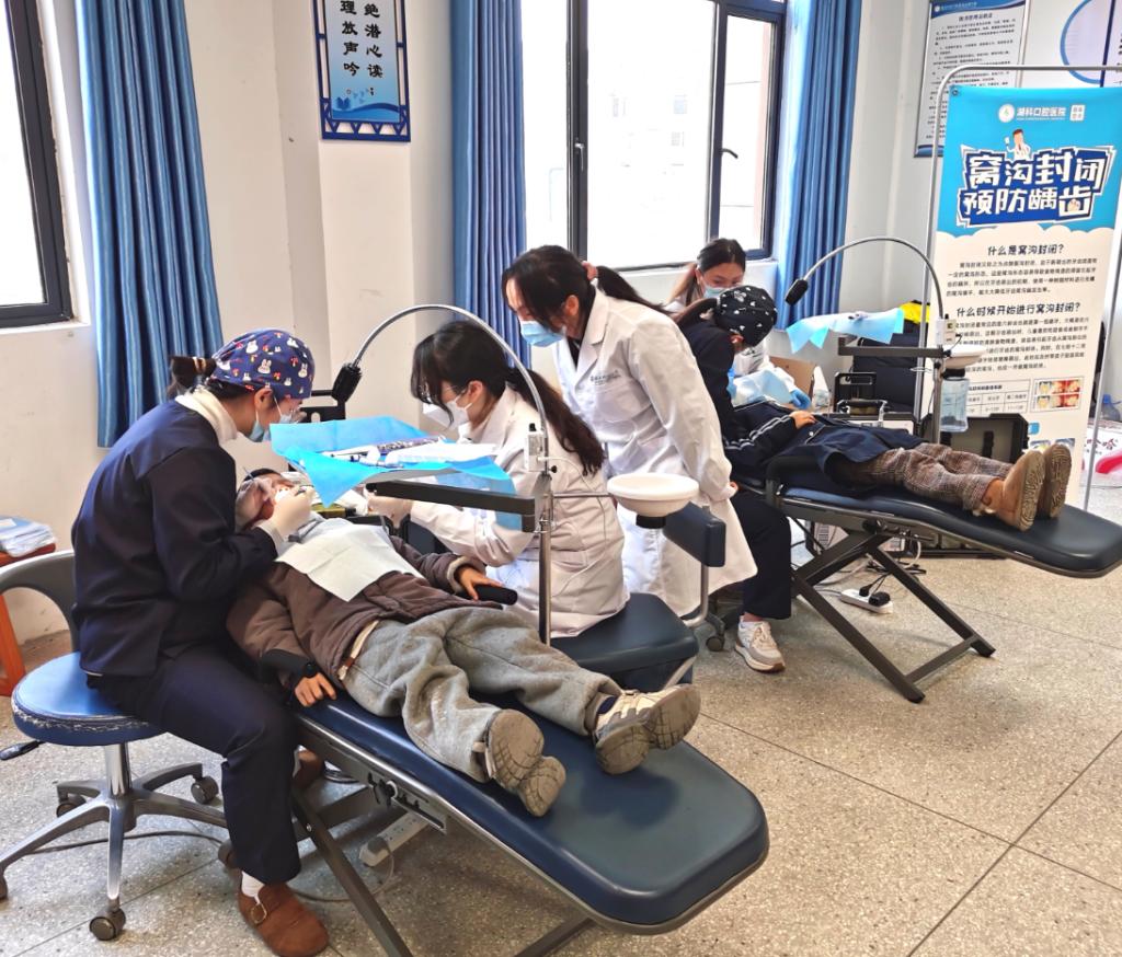 清晨八点,湖北科技学院bbin宝盈与口腔医院的医护人员便携带专业设备抵达泉都学校。在精心布置的临时诊室内,孩子们有序排队接受口腔检查。周燕红教授亲自带领团队,为适龄学生进行细致的窝沟封闭治疗。