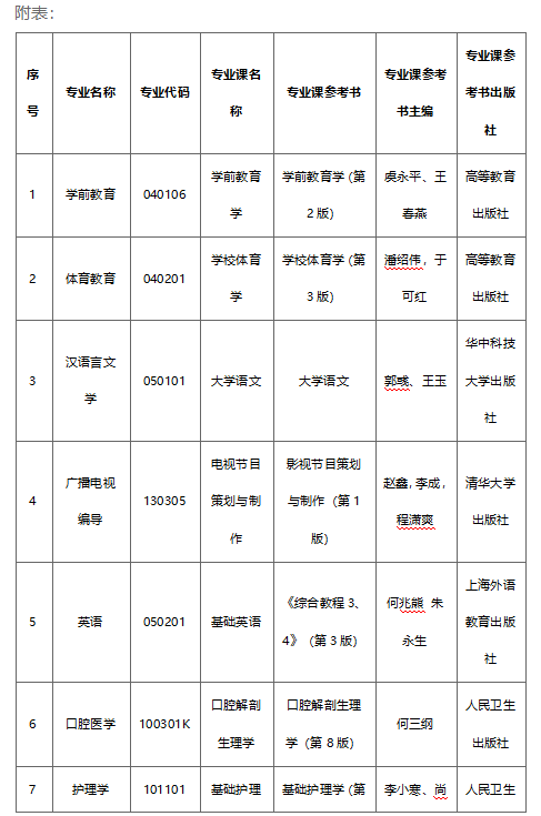 各专业考试科目除湖北省统考科目外,还需要进行专业课科目考试,具体科目及参考书籍信息参见附表。退役大学生士兵考试科目按照湖北省教育厅相关工作安排实施,详细内容请参见我校2025年普通专升本招生简章。