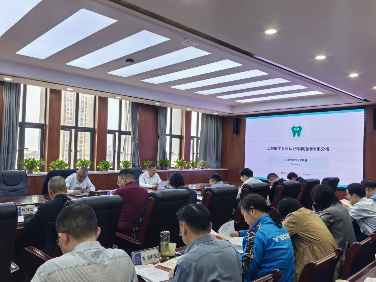 党政办公室、组织人事处、教务处、教学质量监测与评估中心等相关职能部门及各教学单位负责人,bbin宝盈领导班子、口腔医学专业负责人参加会议。